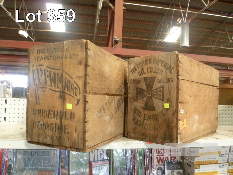 2 x PETRONALIA TIMBER CRATES, "THE BRITISH IMPERIAL OIL CO LTD" & "THE SHELL CO OF AUSTRALIA, PENNANT"