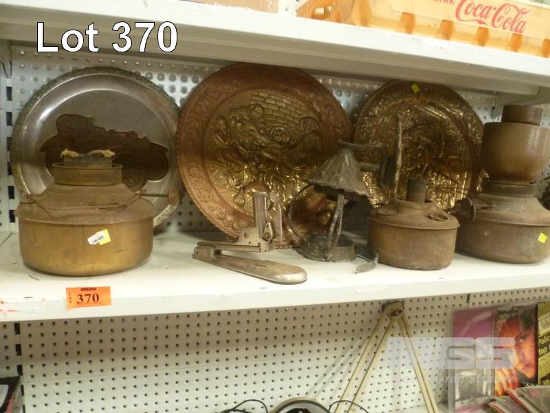 BRASS EMBOSSED PLATES, ROLL ROYCE PLATE, KEROSENE LAMP BASES, VANGUARD STAPLER & WALL SCONCE