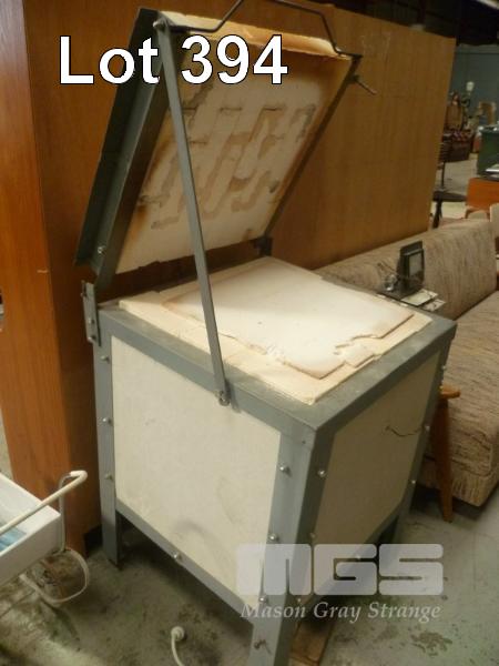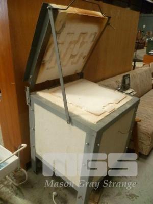KILN, APPEARS HOME MADE, HINGED OPEN TOP 240V, 15 AMP, EXTERNAL DIMENSIONS: 90 (INC POWER BOX) x 105 x 75cm (D) INTERNAL DIMENSIONS: 38 x 45 x 37cm (D)