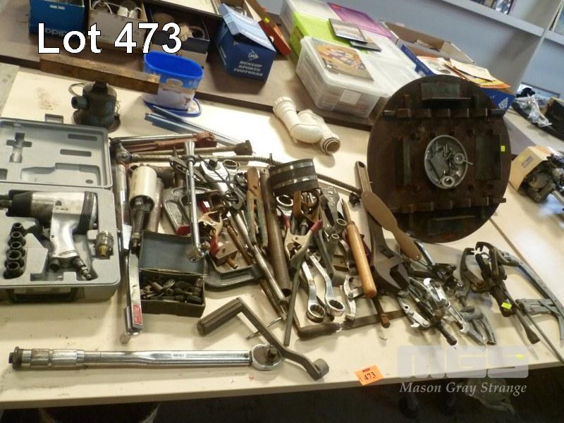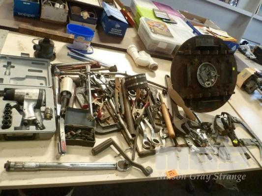 ASSORTED HAND TOOLS, INC PNEUMATIC RATTLE GUN WITH SOCKET, ETC, 1 x TABLE