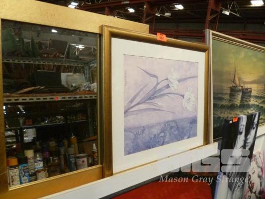 2 x FRAMED PICTURES & GOLD FRAMED MIRROR