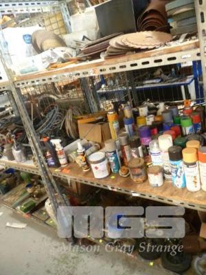 ASSORTED CUTTING/GRINDING DISCS, PART SPRAY CANS, SEALANTS, TROLLEY WHEELS, ETC, 3 x BAYS
