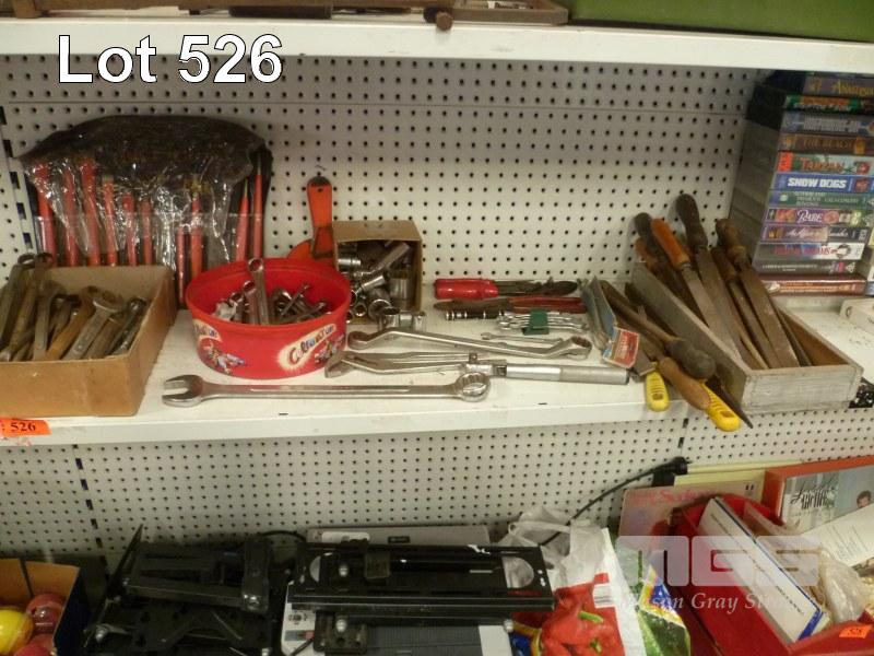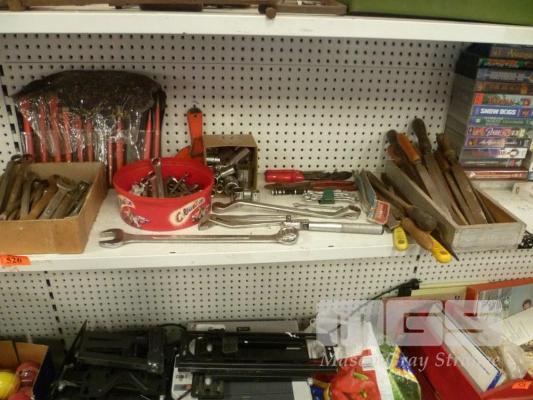 ASSORTED TOOLS INCLUDING MINIMAX & DANIEL FORGE SPANNERS & SOCKETS, 1 x SHELF