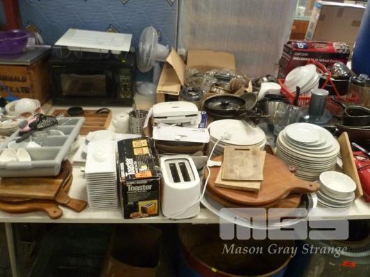ASSORTED KITCHENWARE, APPLIANCES, DINNERWARE, ETC, 1 x TABLE