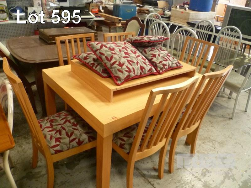 PINE 7 PIECE DINING SUITE INC RECTANGULAR EXTENSION TABLE & 6 x DINING CHAIRS