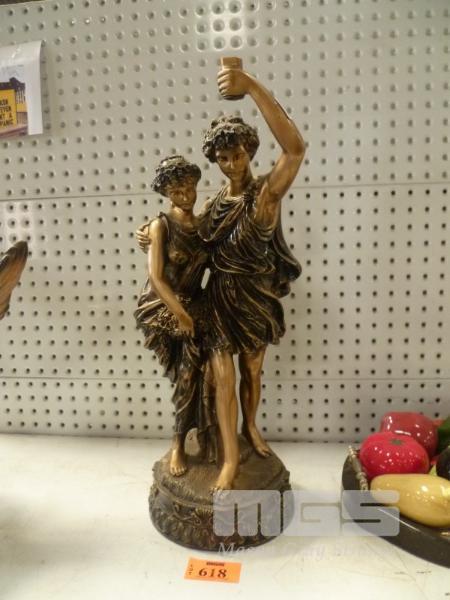 COMPOSITE STATUE ROMAN LOOKING GUY HOLDING TORCH WITH FEMALE FRIEND