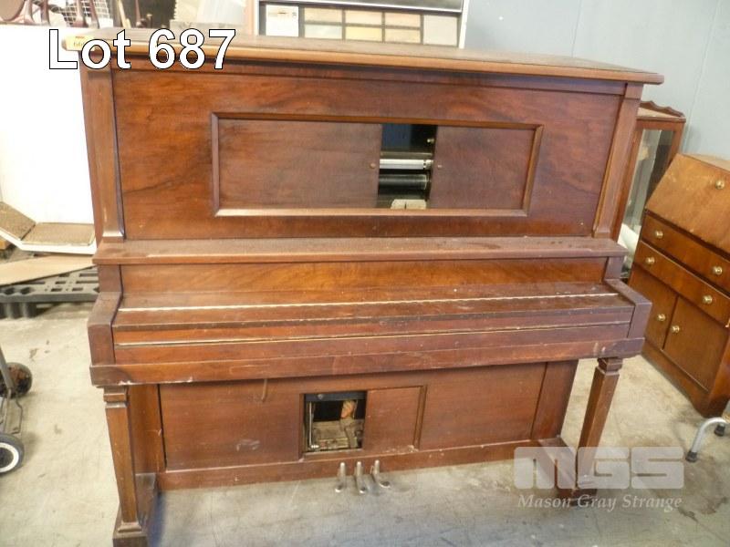 MOREL, JESSE FRENCH & SONS PIANOLA, MADE IN USA TIMBER CASED, STEEL FRAMED S/NO: 99672