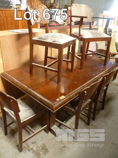ART DECO 7 PIECE DINING SUITE INC RECTANGULAR TABLE, 1 x CARVER CHAIR & 5 x DINING CHAIRS