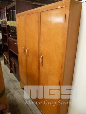 MID CENTURY TIMBER VENEER WARDROBE, 3 DOOR