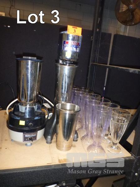 BLENDER, HAMILTON BEACH MILKSHAKE MAKER, ROBAND, RHD & 12 x MILKSHAKE GLASSES