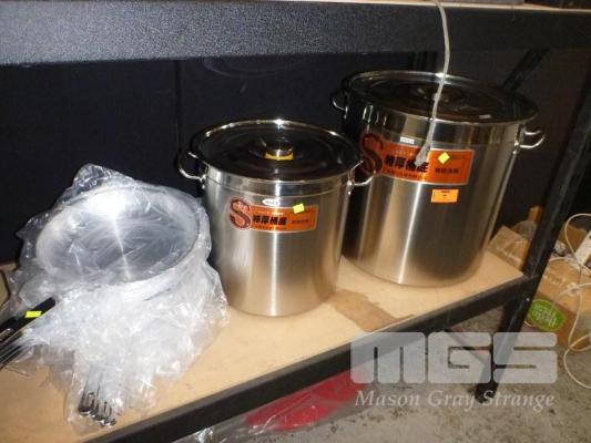 2 x STOCK POTS, 35 & 45cm & 10 x FRY PANS, 30cm