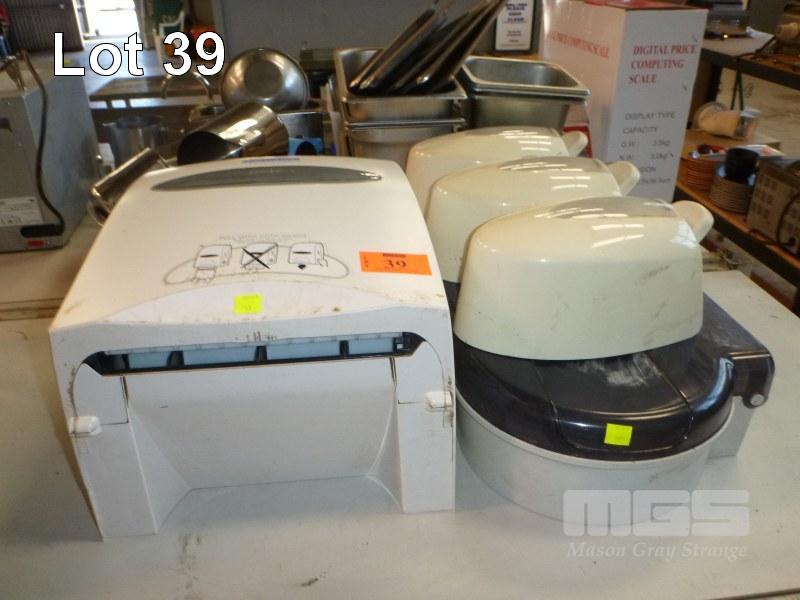 2 x SOAP DISPENSERS, 2 x TOILET ROLL DISPENSERS & PAPER TOWEL DISPENSER