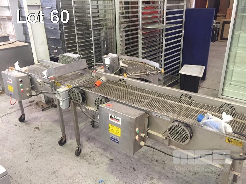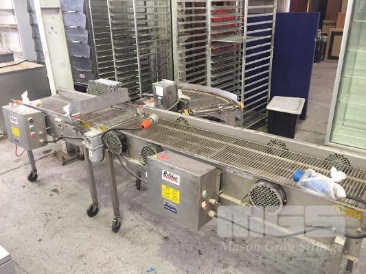 3 x CONVEYOR SECTIONS, BELSHAW MOD: GL18, CC18 & 45DC 450mm BELT, STAINLESS STEEL CASED, 415V