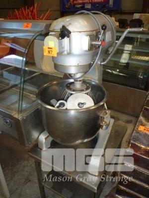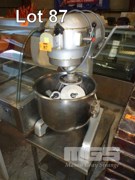 PLANETARY MIXER, HOBART A200, 240V WITH 3 x ATTACHMENTS ON MOBILE STAND