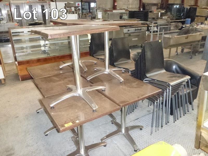 9 x CAFE TABLES, 60 x 60cm, MOULDED TOP, 22 x CAFE CHAIRS & 2 x TUB CHAIRS