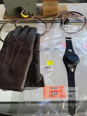DENTS WOMEN'S RABBIT FUR LINED LEATHER GLOVES AND LEATHER WATCH BAND WITH PROTECTIVE COVER