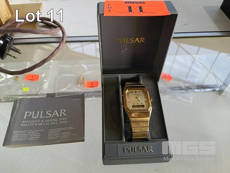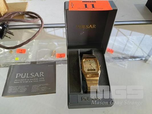PULSAR QUARTZ GOLD PLATED COMBINATION ANALOGUE/DIGITAL MENS WRIST WATCH (V011-500) IN ORIGINAL BOX WITH USER GUIDE