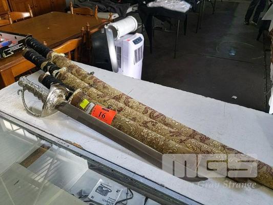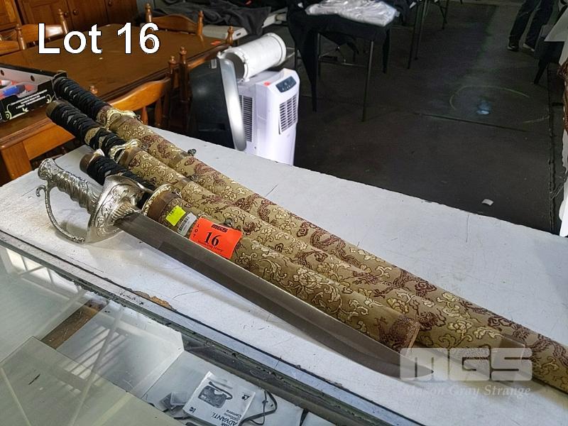 SET OF 3 x MATCHING SAMURAI SWORDS AND CUTLASS.