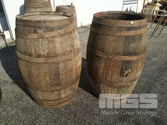 2 x OLD HOGSHEAD WINE BARRELS (END MISSING FROM ONE)