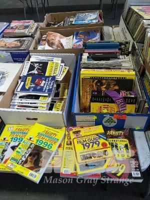 COLLECTION OF MOVIE BUFF BOOKS AND MAGAZINES. VARIETY INTERNATIONAL FILM GUIDE, MORRIS SPEED'S FILM REVIEW, HALLIWELLS FILMGOER'S COMPANION, PLAYBILL MAGAZINE, FILMS IN REVIEW AND MORE (2 x FRUIT BOXES)