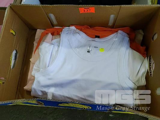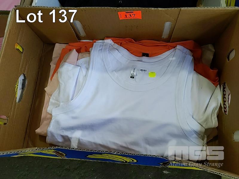 3 x ASCOLOUR "WAFER" WOMENS TEE, COLOUR "OJAY" SIZE "S" 1 x ASCOLOUR "MAPLE" WOMENS TEE, COLOUR "NATURAL" SIZE "S" 1 x ASCOLOUR "BEVEL" WOMENS TEE, COLOUR "WHITE" SIZE "S" 3 x ASCOLOUR "SUNDAY" WOMENS TANK, COLOUR "WHITE" SIZE "S"