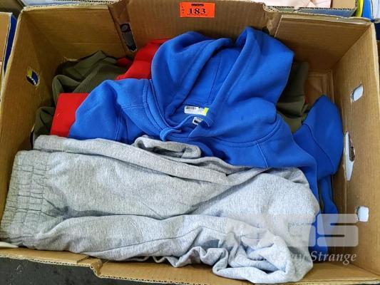 1 x ASCOLOUR "HOOD", COLOUR "KELLY GREEN", SIZE "MED" 1 x ASCOLOUR "SUPPLY HOOD", COLOUR "RED", SIZE "L" 1 x ASCOLOUR "SUPPLY HOOD", COLOUR "BRIGHT ROYAL", SIZE "L" 1 x ASCOLOUR "TRACK PANTS", COLOUR "GREY MARLE", SIZE "M"