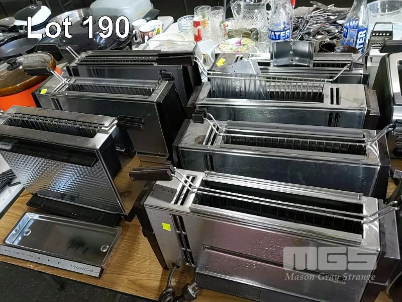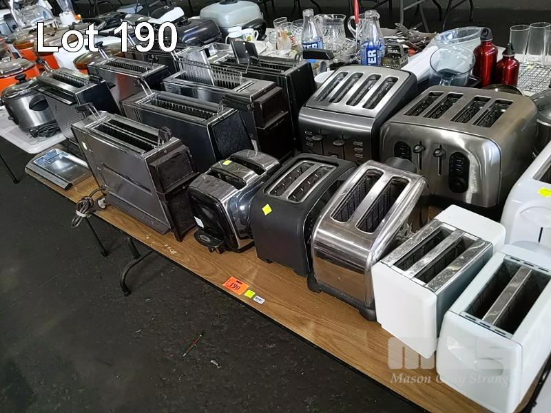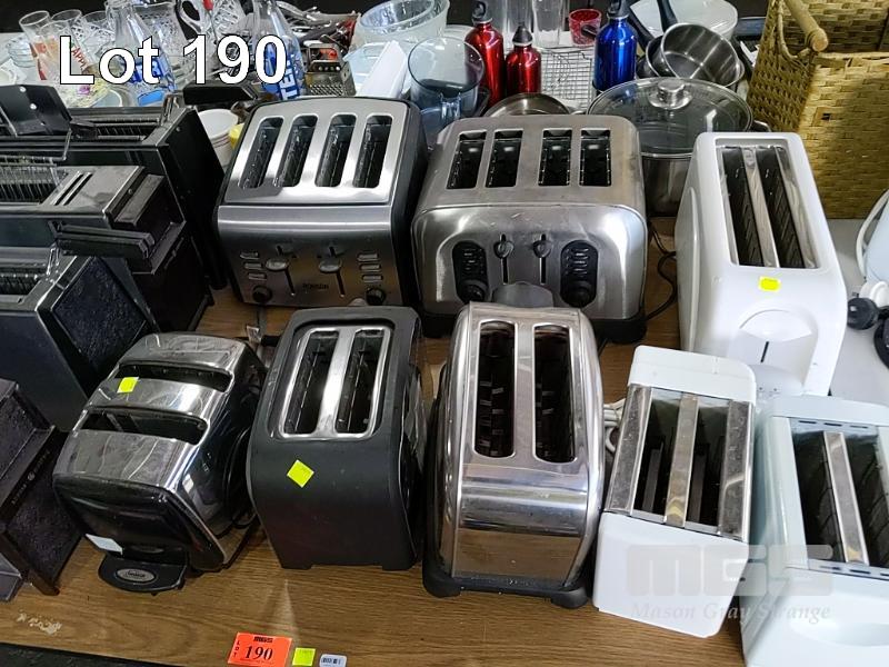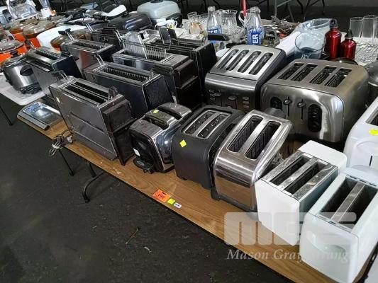 15 x TOASTERS AND VERTICAL GRILLS. RONSON, SUNBEAM , BELLE, GENERAL ELECTRIC ETC. 3 OF THE VERTICAL GRILLS MISSING THE POWER CABLE. CONDITION UNKNOWN FOR THE REMAINDER OF THE LOT. (1 x TABLE)