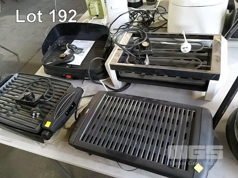 8 x ELECTRIC BARBECUE GRILLS. CHARMATE, KAMBROOK, SUNBEAM, COOKWELL ETC. SOME INCOMPLETE *CONDITION UNKNOWN*