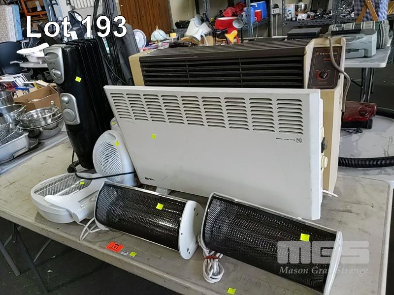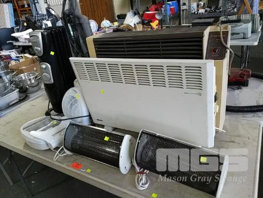 8 X ELECTRIC HEATERS. MISTRAL, MORETTI, GOLDAIR, VULCAN ETC. OIL HEATER, CONVECTION HEATERS, RADIANT HEATERS & FAN HEATERS. *CONDITION UNKNOWN* (1x TABLE)
