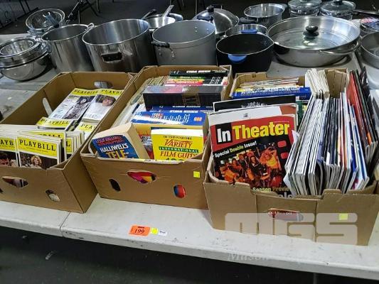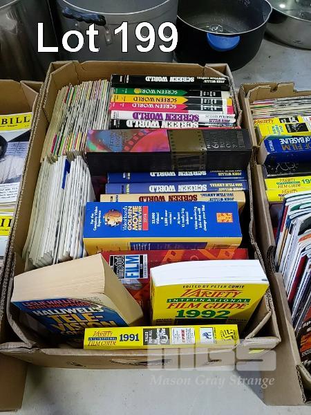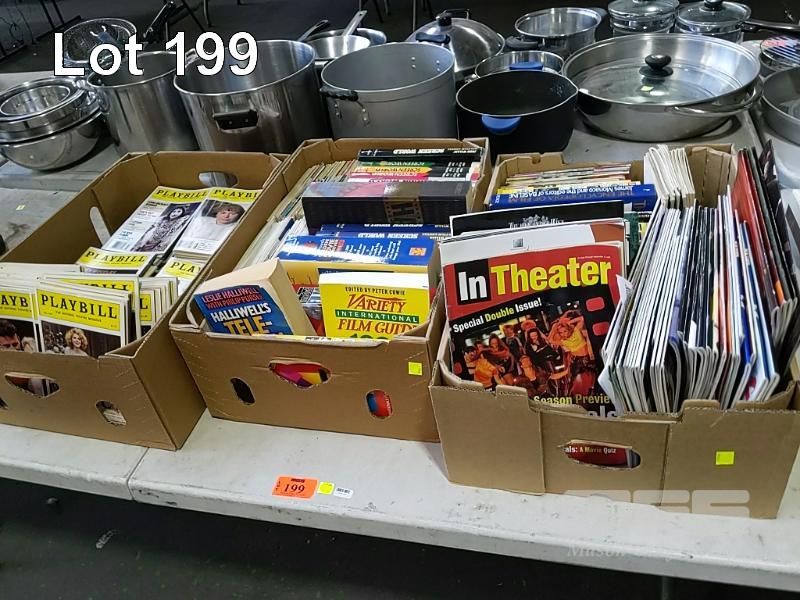 COLLECTION OF MOVIE BUFF BOOKS AND MAGAZINES. "VARIETY INTERNATIONAL FILM GUIDE", "HALLIWELLS TELEVISION COMPANION", "SCREEN WORLD", PLAYBILL MAGAZINE, IN THEATRE MAGAZINE FILMS IN REVIEW AND MORE (3 x FRUIT BOXES)