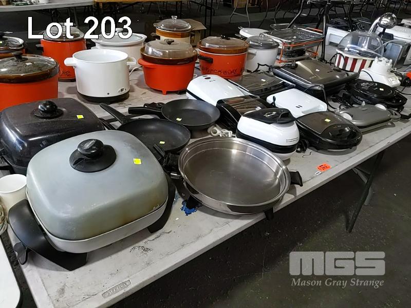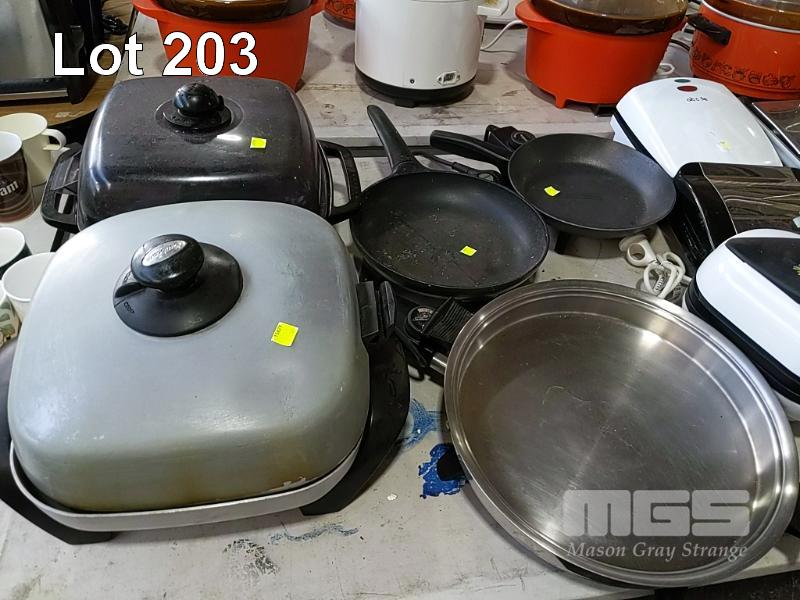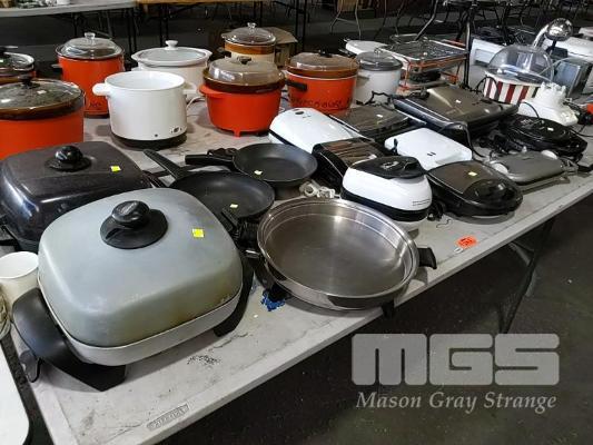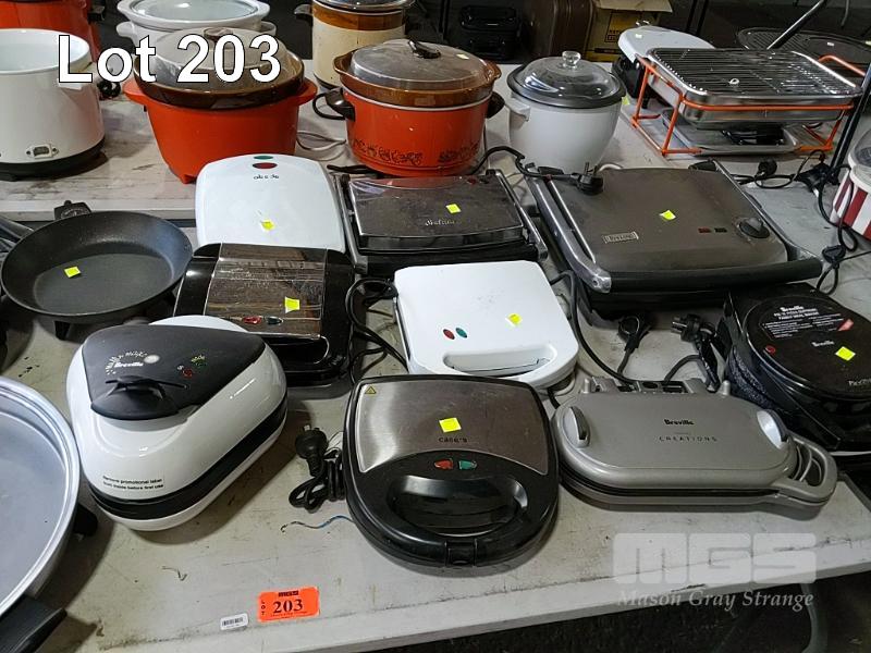 ASSORTED KITCHEN APPLIANCES, SANDWICH PRESSES, ELECTRIC FRYPANS ETC
