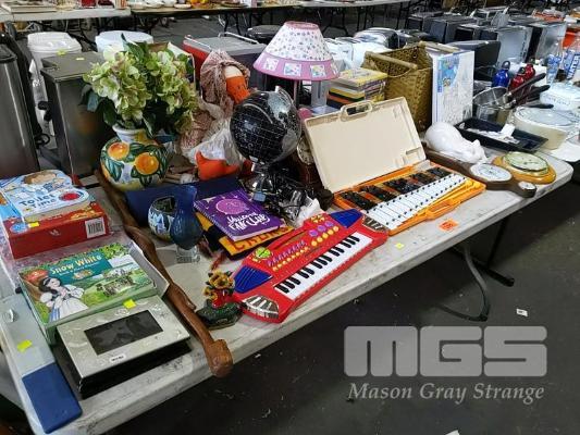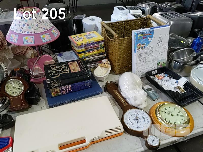 ASSORTED HOMEWARES CERAMIC ORNAMENTS, CLOCKS, BAROMETER, LAMP, VASE, CDs & DVDs, ETC.