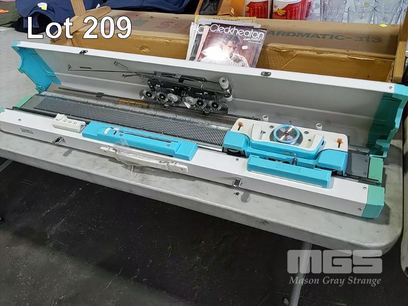 SINGER "CARDMATIC-313" KNITTING MACHINE. NEAR NEW CONDITION IN ORIGINAL BOX. EMBROIDERY SCROLL STAND.