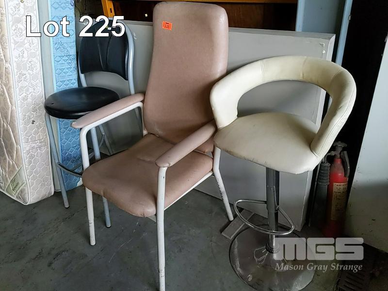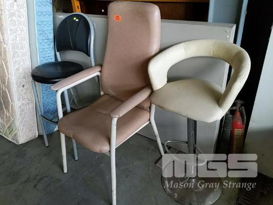ADJUSTABLE HEIGHT, HIGH BACK BARIATRIC CHAIR, AIR LIFT BAR CHAIR AND STEEL BAR CHAIR (ALL WITH MINOR FAULTS)
