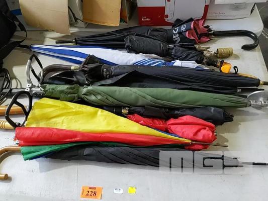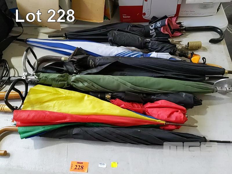 12 x UMBRELLAS INCLUDING SHOOTING CHAIR UMBRELLA.