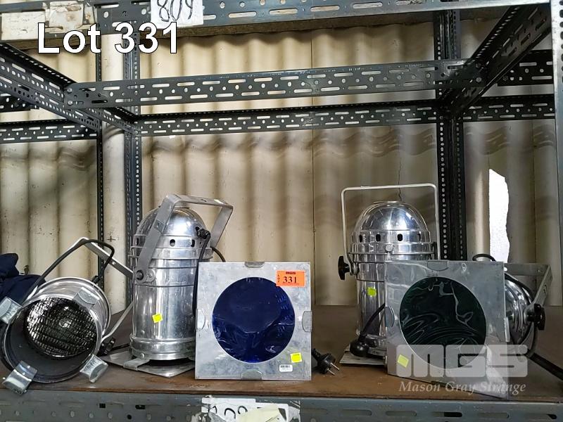 5 x CAN STYLE STAGE LIGHTS. 4 x COLOUR FILTERS (VARIOUS COLOURS)