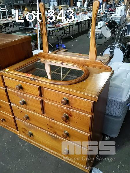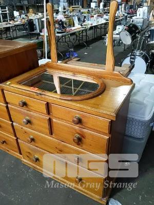 PINE DRESSER, 6 DRAWER, MIRROR BACKED WITH TILTING MIRROR