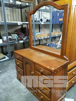 PINE DRESSER, MIRROR BACKED, 8 DRAWER, CENTRAL DOOR, ARCHED TOP MIRROR