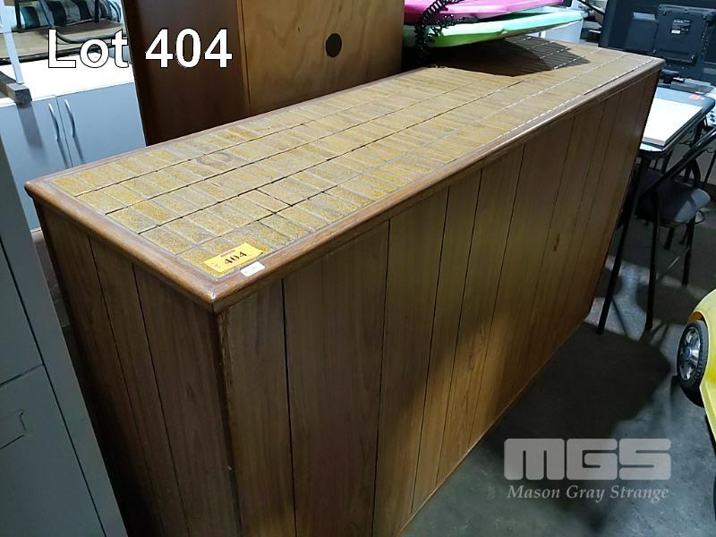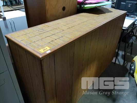 TILE TOPPED L-SHAPED BAR SECTION WITH UNDERBENCH STORAGE