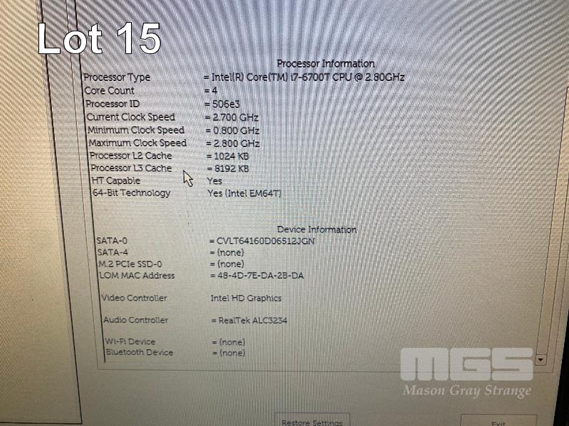 DESKTOP PC, DELL OPTIPLEX 7040 MICRO, CORE i7 6700T (6TH GEN) @ 2.8GHz, 16GB DDR4 RAM, 512GB SSD, INTEL HD VIDEO, 6 x USB, WINDOWS 10 HOME INSTALLED, KEYBOARD, MOUSE & POWER SUPPLY S/N:6Z241H2