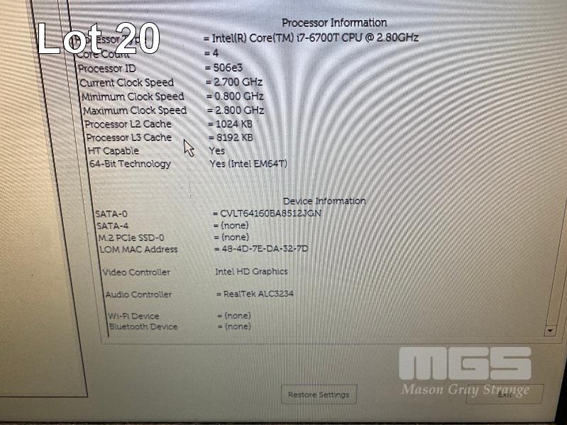 DESKTOP PC, DELL OPTIPLEX 7040 MICRO, CORE i7 6700T (6TH GEN) @ 2.8GHz, 16GB DDR4 RAM, 512GB SSD, INTEL HD VIDEO, 6 x USB, WINDOWS 10 HOME INSTALLED, KEYBOARD, MOUSE & POWER SUPPLY S/N:6YLB1H2