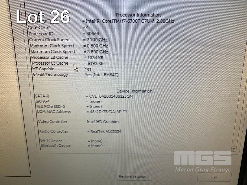 DESKTOP PC, DELL OPTIPLEX 7040 MICRO, CORE i7 6700T (6TH GEN) @ 2.8GHz, 16GB DDR4 RAM, 512GB SSD, INTEL HD VIDEO, 6 x USB, WINDOWS 10 HOME INSTALLED, KEYBOARD, MOUSE & POWER SUPPLY S/N:6YB51H2