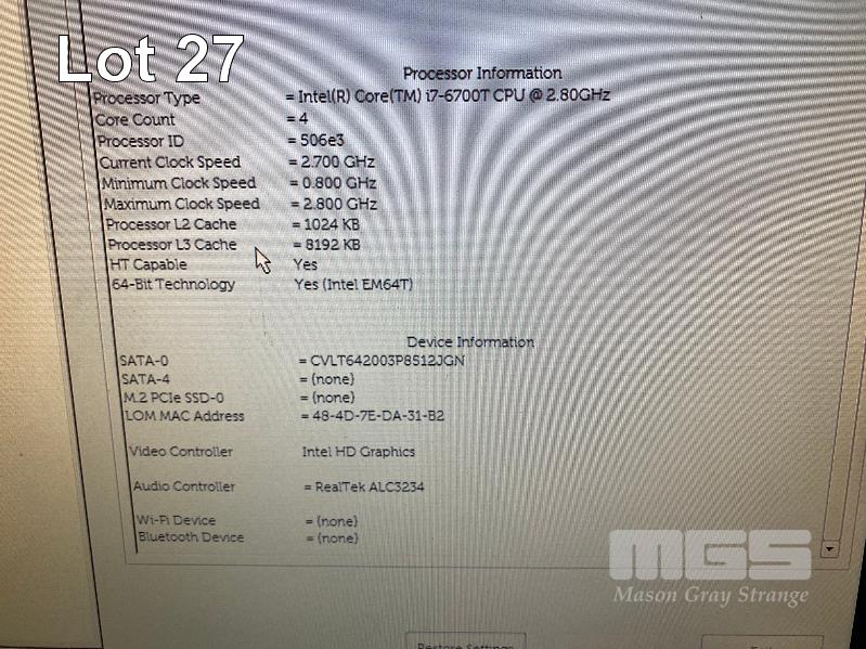 DESKTOP PC, DELL OPTIPLEX 7040 MICRO, CORE i7 6700T (6TH GEN) @ 2.8GHz, 16GB DDR4 RAM, 512GB SSD, INTEL HD VIDEO, 6 x USB, WINDOWS 10 HOME INSTALLED, KEYBOARD, MOUSE & POWER SUPPLY S/N:6Z881H2