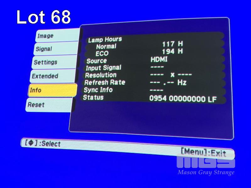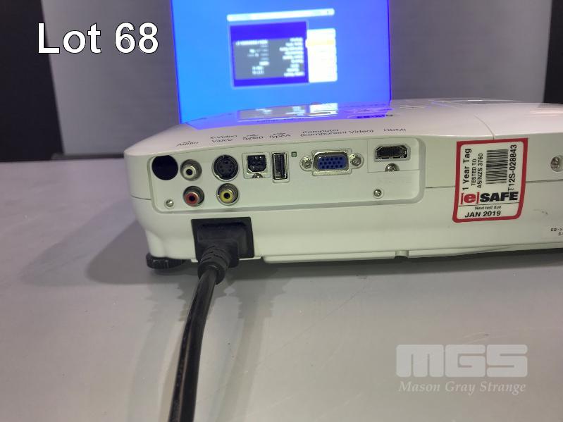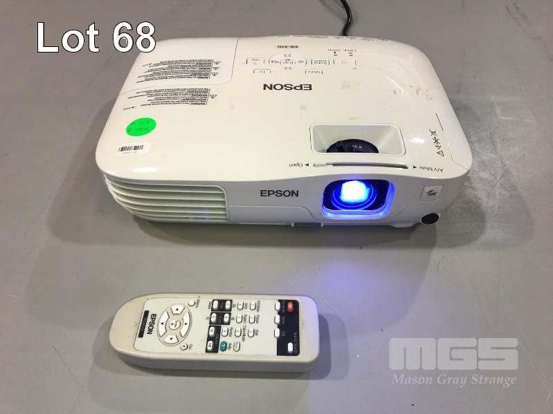 PROJECTOR, EPSON EB-X10 3LCD, 2,600 LUMENS, HDMI, 117 NORMAL & 194 ECO HOURS SHOWING WITH REMOTE S/N:NEPF0Y0064L