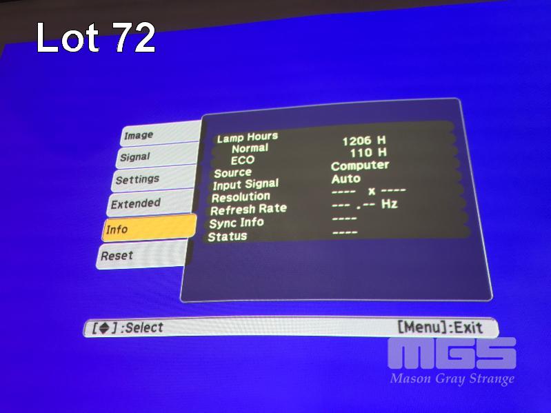 PROJECTOR, EPSON EB-X8 3LCD, 2,500 LUMENS, HDMI, 1,206 NORMAL & 110 ECO HOURS SHOWING WITH REMOTE S/N:M4YF990126L