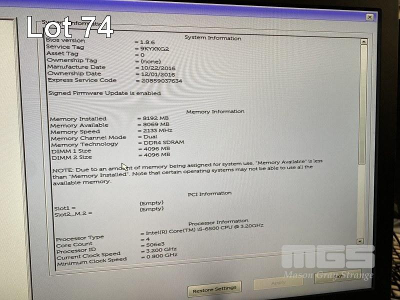 ALL-IN-ONE PC, DELL OPTIPLEX 7440, CORE i5 6500 (6TH GEN) @ 3.2GHz, 8GB DDR4 RAM, 256GB SSD, DVD-RW, INBUILT 23.8" FHD WIDESCREEN (1920x1080), INTEL HD VIDEO, WEBCAM, 8 x USB, WINDOWS 10 HOME INSTALLED, KEYBOARD & MOUSE (NOTE: PRESSURE MARK ON SCREEN) S/N:9KYXKG2