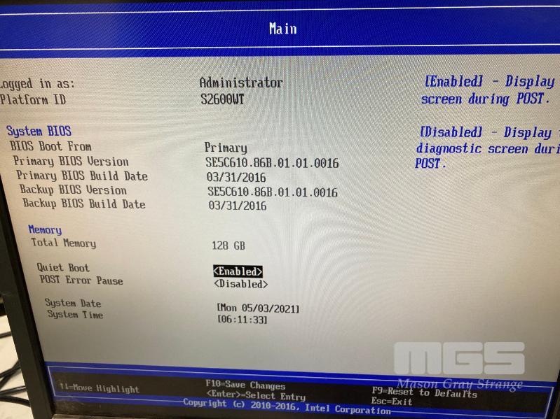 RACKMOUNT SERVER, INTEL SERVER SYSTEM, R1208WT2GSR, 1U, 2 x XEON E5-2630 v4 @ 2.2GHz, 128GB ECC DDR4 RAM (16x8), 5 x 480GB SSD, INTEL CNA X710-DA2 NETWORK ADAPTER, 2 x PSU S/N:BQWL71750226