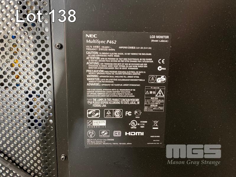 MONITOR, NEC MULTISYNC P462 46" LCD COMMERCIAL DISPLAY, HDMI INPUT (NO REMOTE, NO STAND) S/N:33300989NA