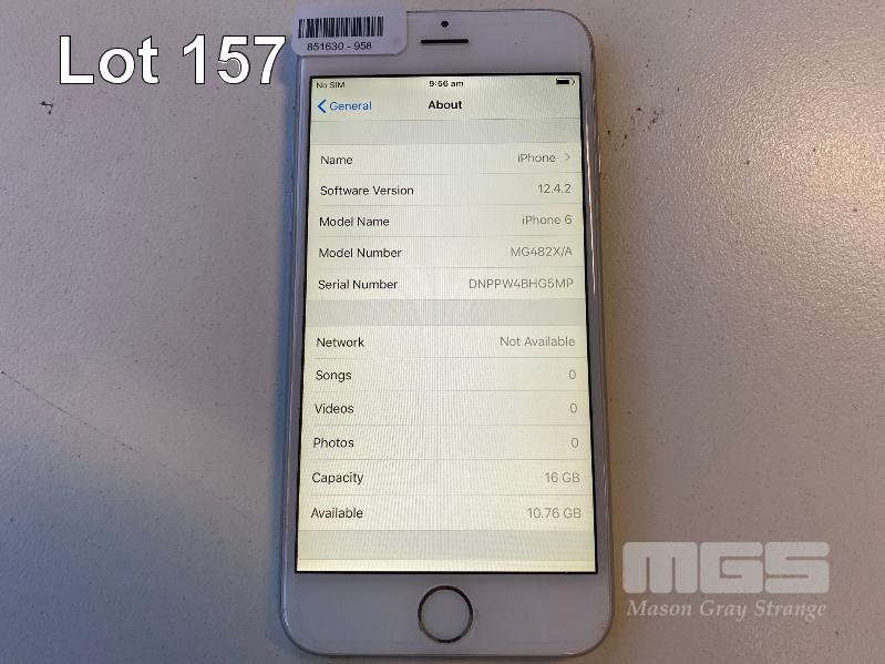 APPLE iPHONE 6, 16GB, SILVER, MODEL A1586 (NO CHARGER, NO CABLE) S/N:DNPPW4BHG5MP