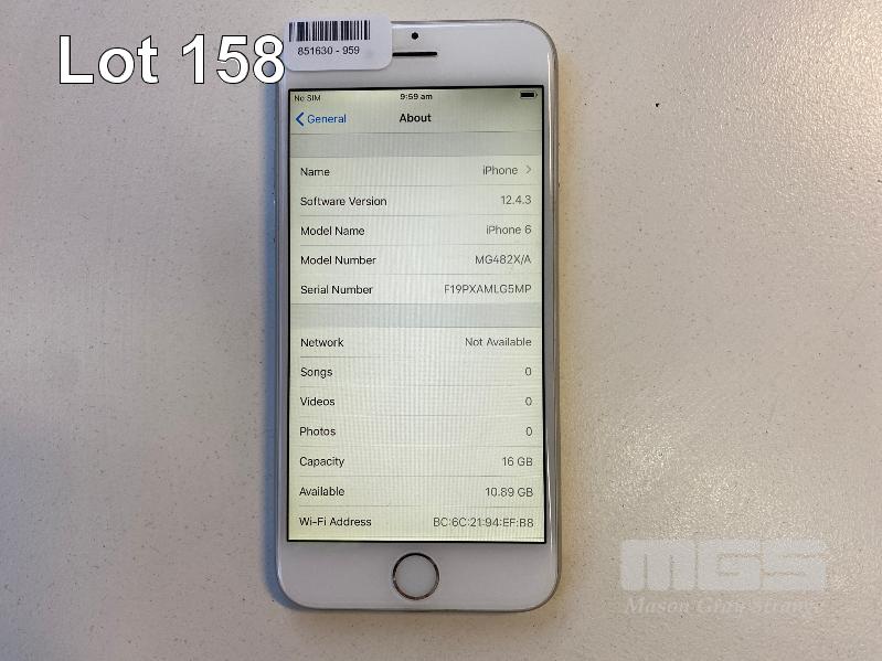 APPLE iPHONE 6, 16GB, SILVER, MODEL A1586 (NO CHARGER, NO CABLE) S/N:F19PXAMLG5MP